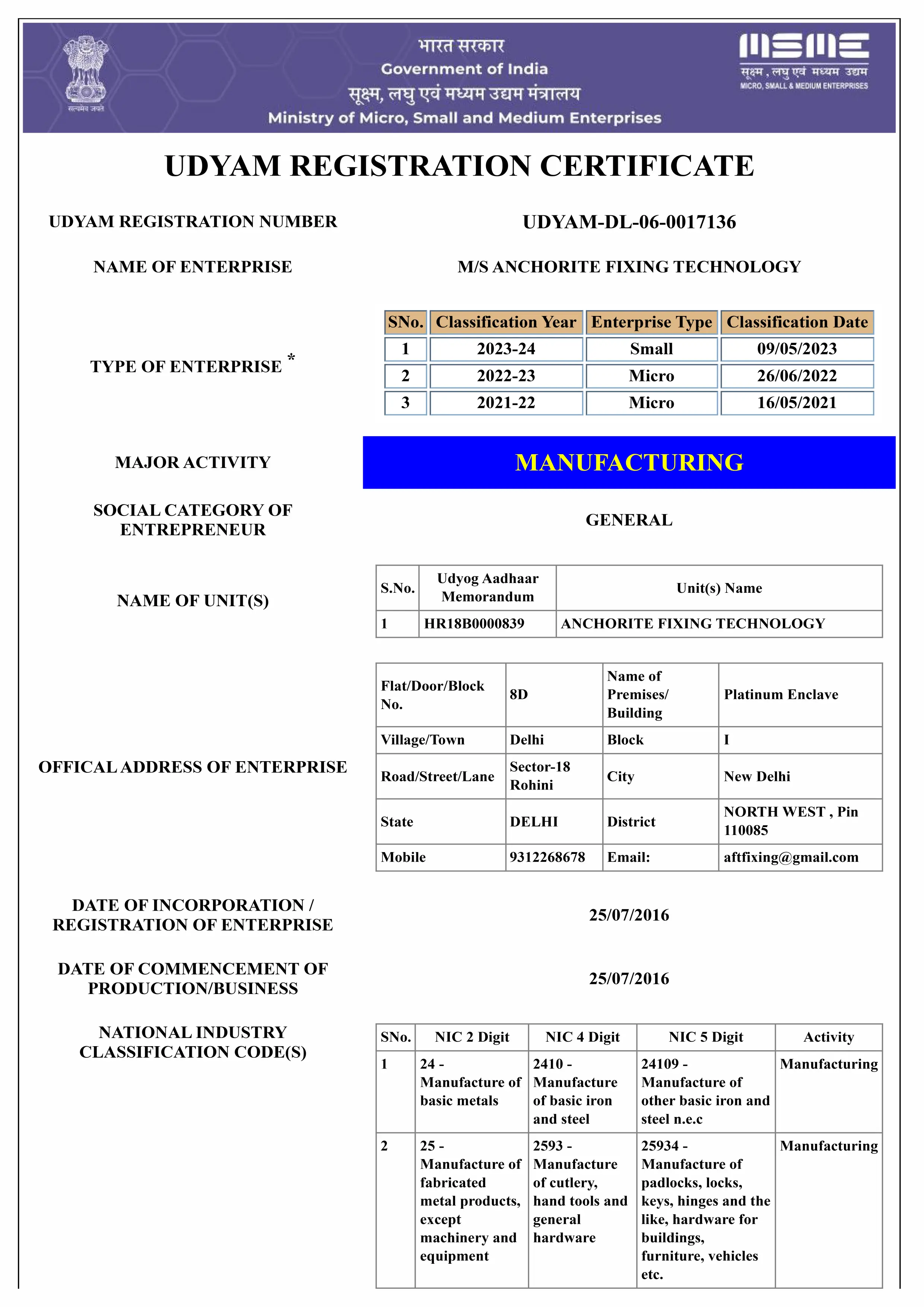 Certificates - Anchorite Fixing Technology (AFT)